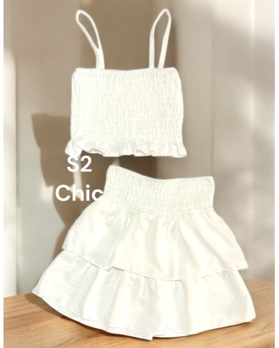 Conjunto estilo panal compuesto por top y falda con volantes