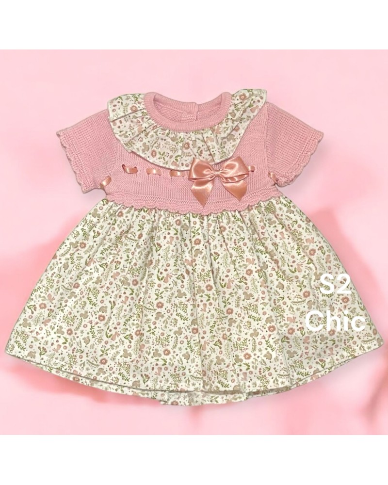 Vestido BB Punto Lazo Rosa Florecitas 700