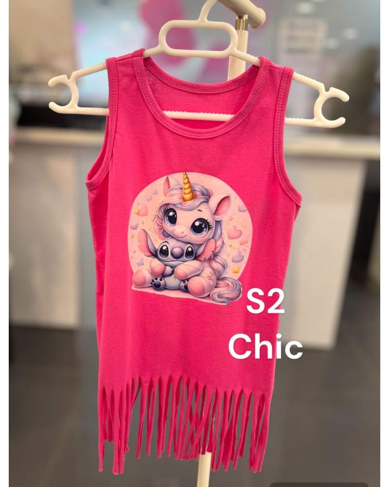 Vestido Flecos Uni Stich Fucsia 23233