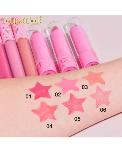 Paleta que contiene: sombra de ojos,iluminador,colorete en polvo,brillos labiales y barra de labios
