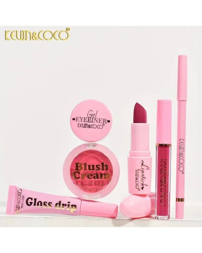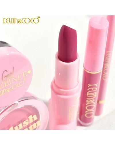 Set que incluye brillo de labios,barra de labios,perfilador de labios, lip gloss mate, colorete en crema y delineador de ojos