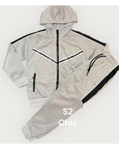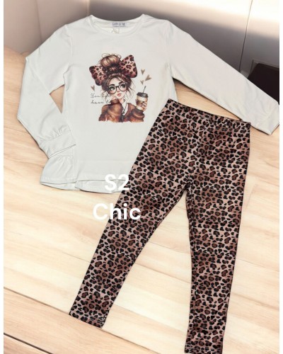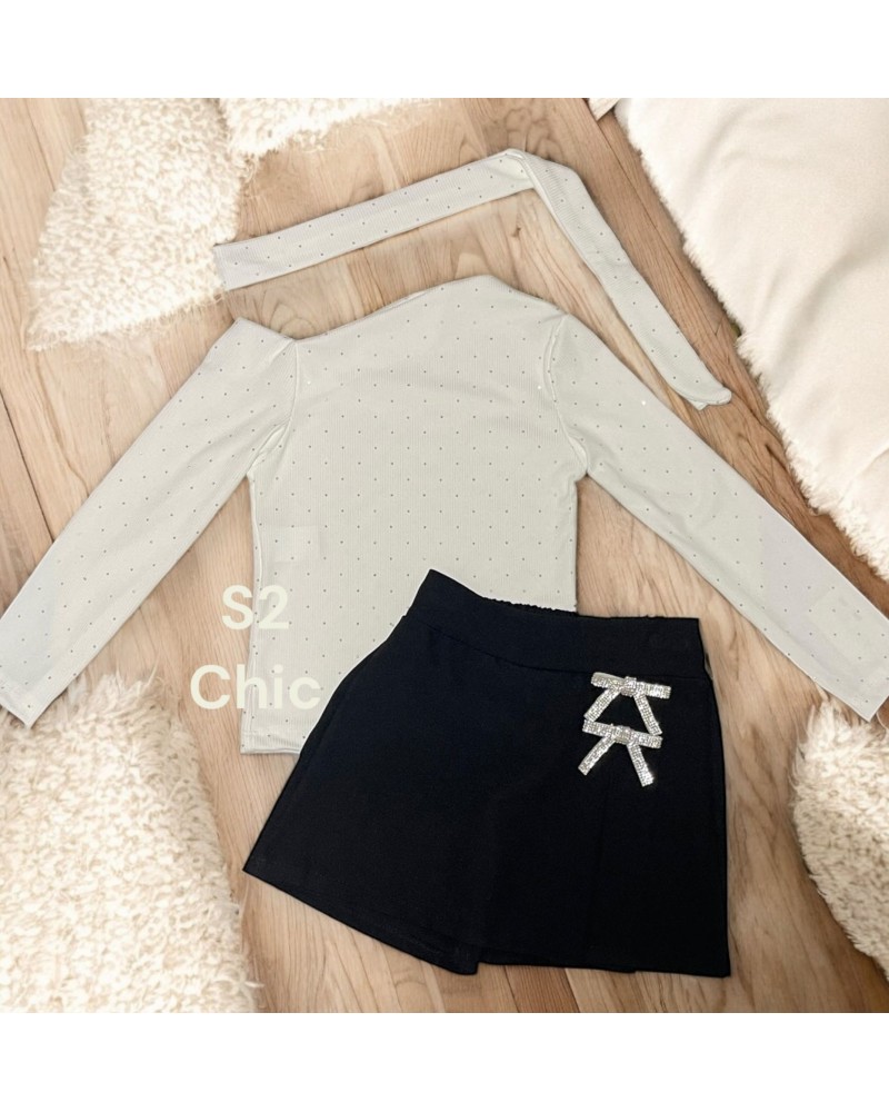 Conjunto compuesto por camiseta de canalé con detalle brillitos y tira para el cuello y falda pantalón