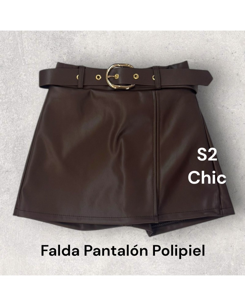 Falda Pantalón Polipiel Hebilla Marrón 34005