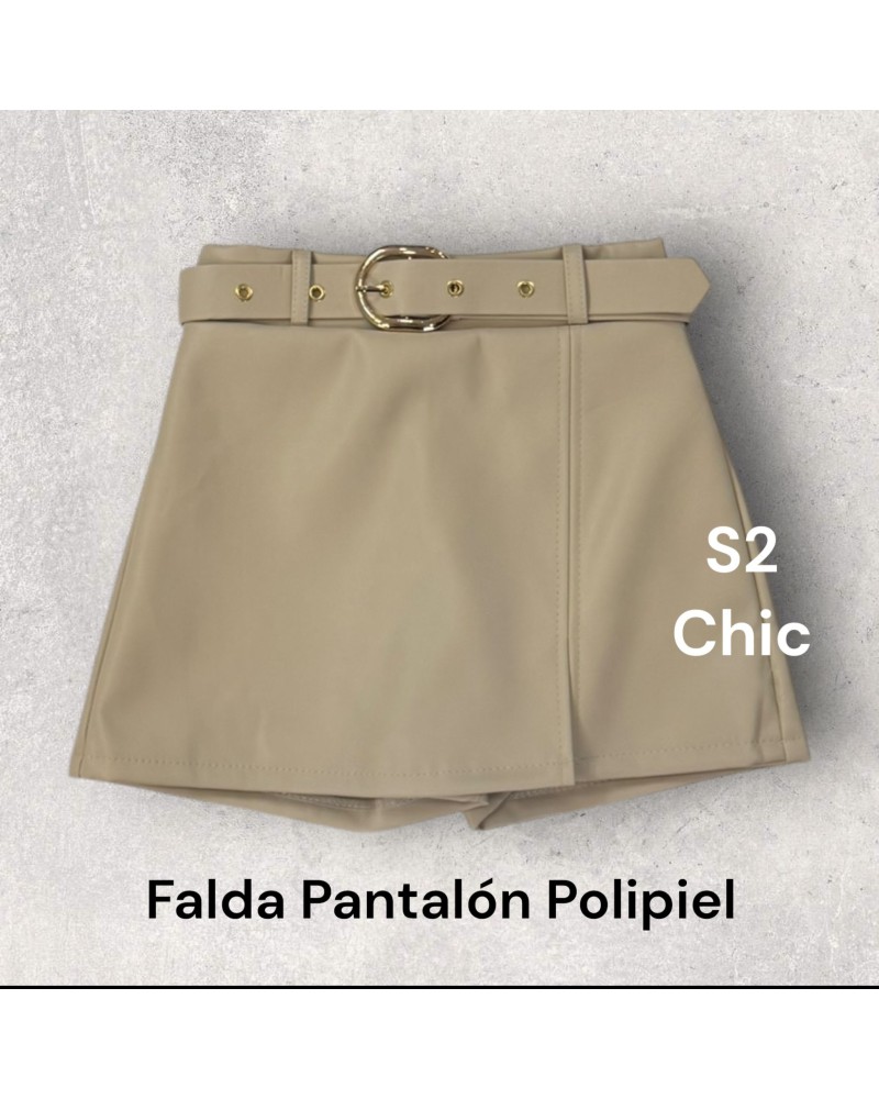 Falda Pantalón Polipiel Hebilla Beige 34005