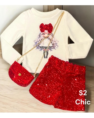 Conjunto Doll Pailletes Rojo 6088